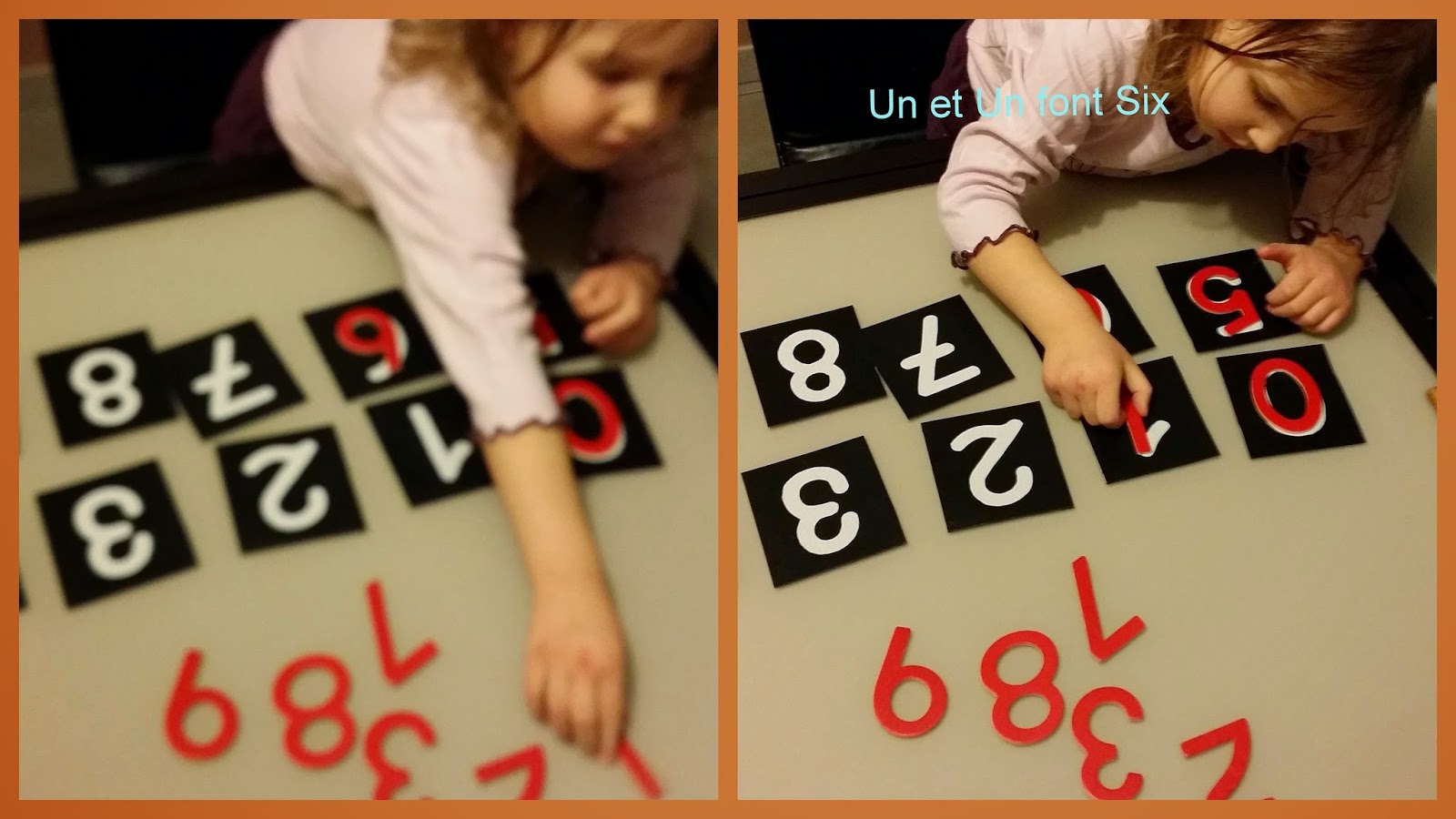 Normalement , il doit être présenter à l'enfant 3 par 3 , on doit le toucher ainsi que lui . Après les avoir toucher, répéter , vous pouvez lui demander où se trouve ce chiffre...