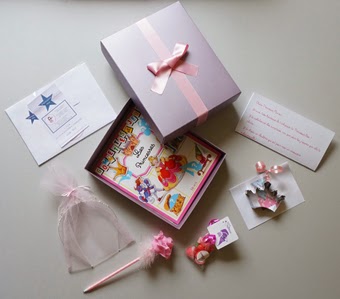 Quelques détails de cette 1 ère box : un diadème , un livre, un super crayon, un emporte piece couronne, des bonbons , un decalco pour tee shirt.................
