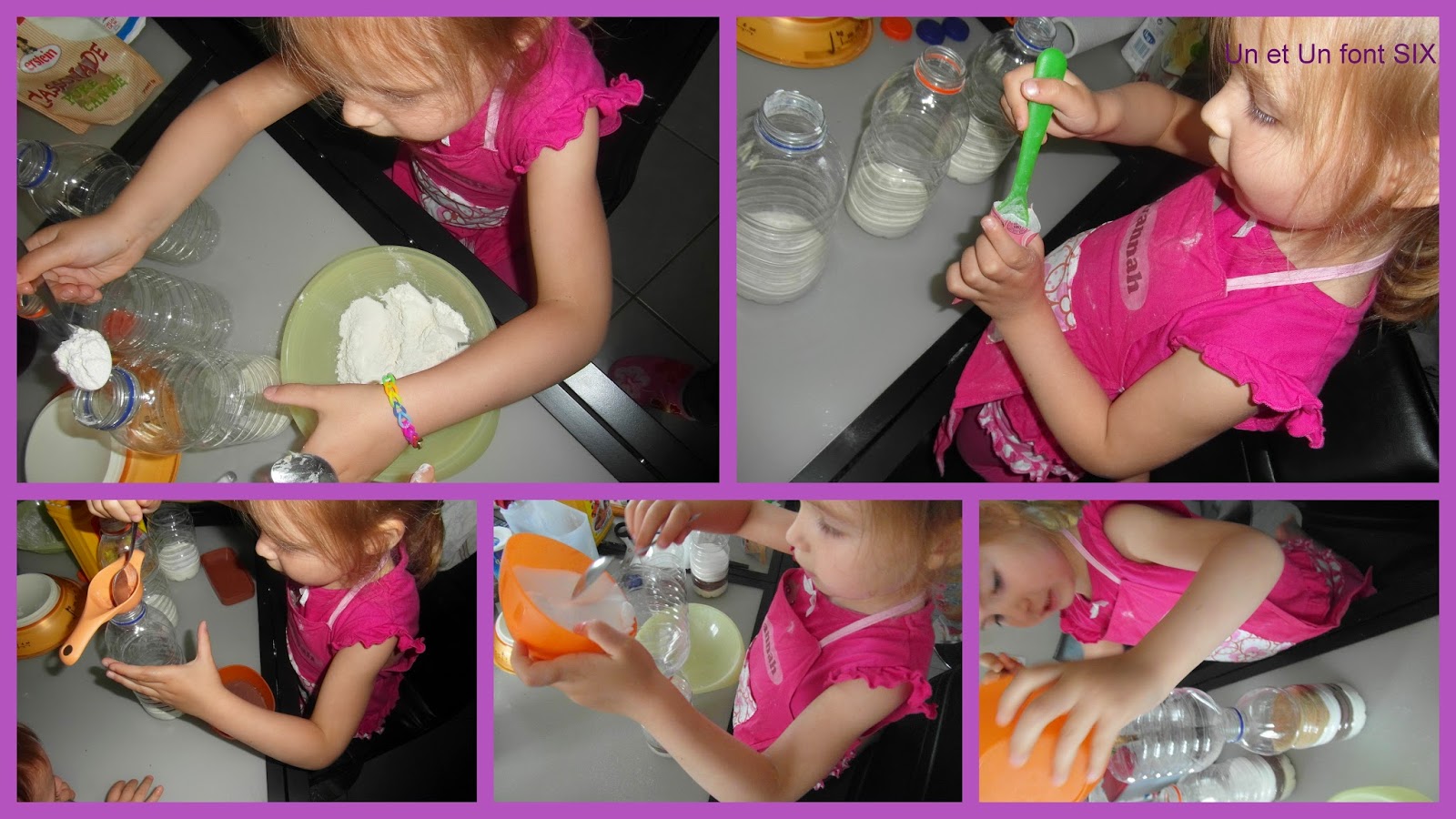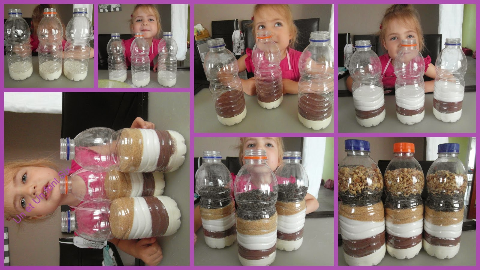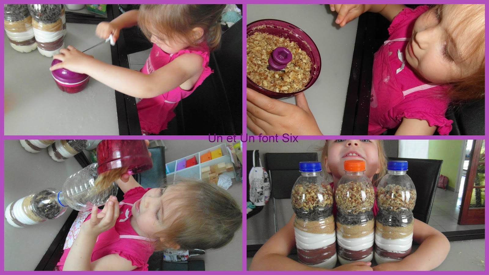 Réalisé dans une bouteille de jus de fruit 1L ( on recycle) par S car les 2 grands n'etaient pas là mais ils ont crée le second cadeau!