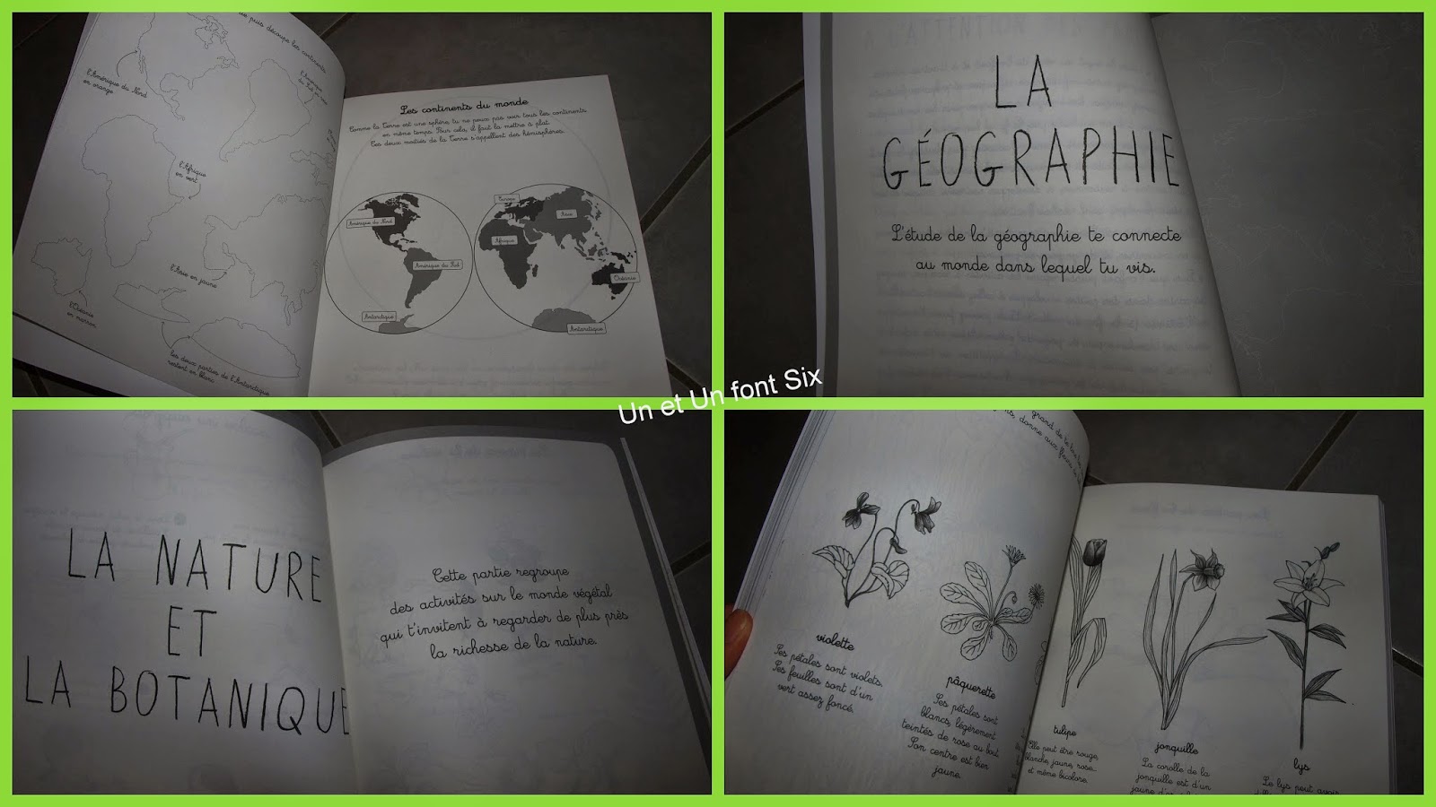 Ca fait un moment que je voulais acheté un cahier d'activité Montessori , en parcourant le rayon librairie d'une grande surface j'ai eu la chance de pouvoir le feuilleter et j'ai beaucoup aimé. Les devoirs de vacances c'est bien mais il y a d'autres choses à découvrir en plus du formel!! Donc j'ai été très attiré par le contenu nature!