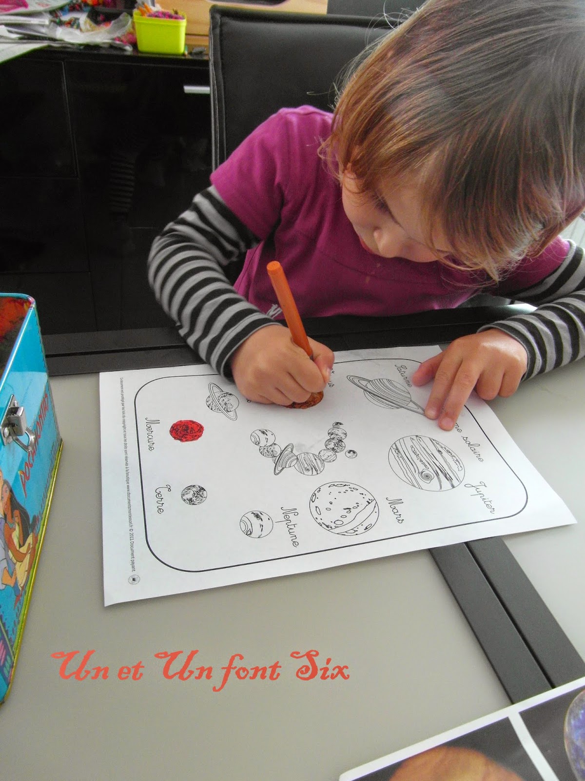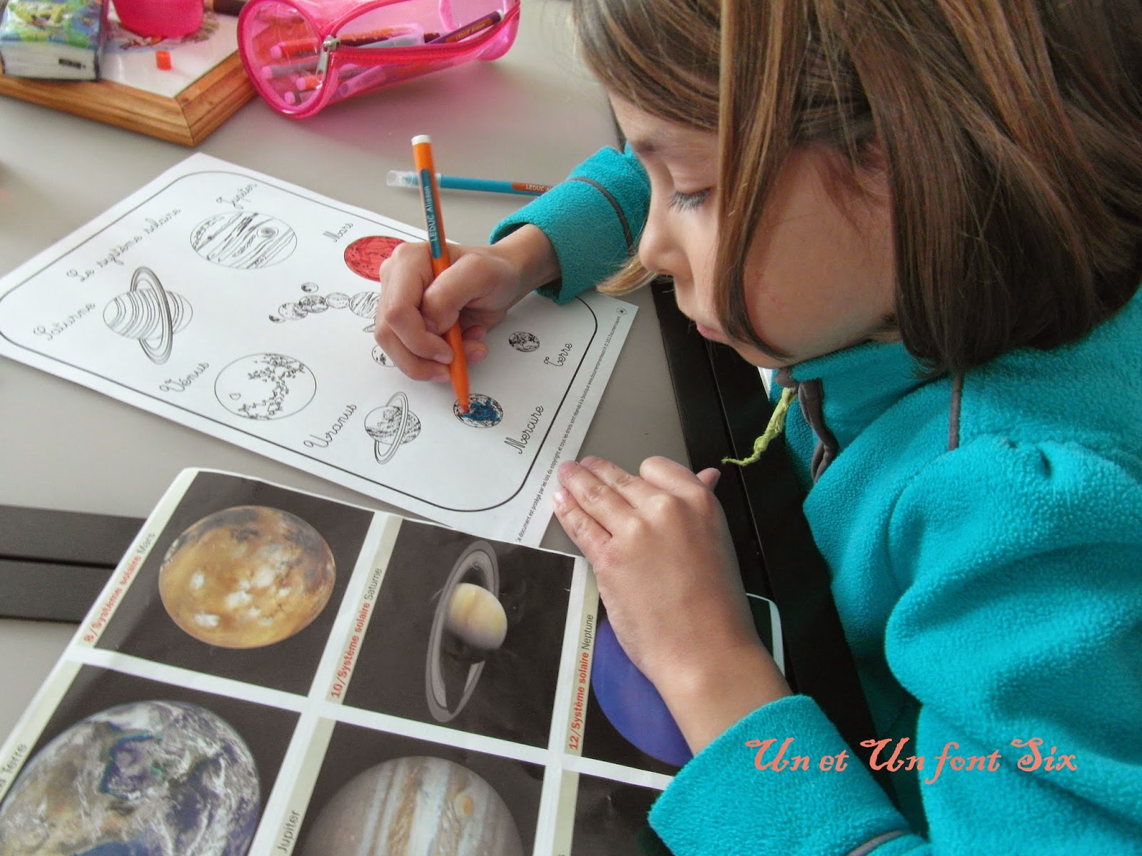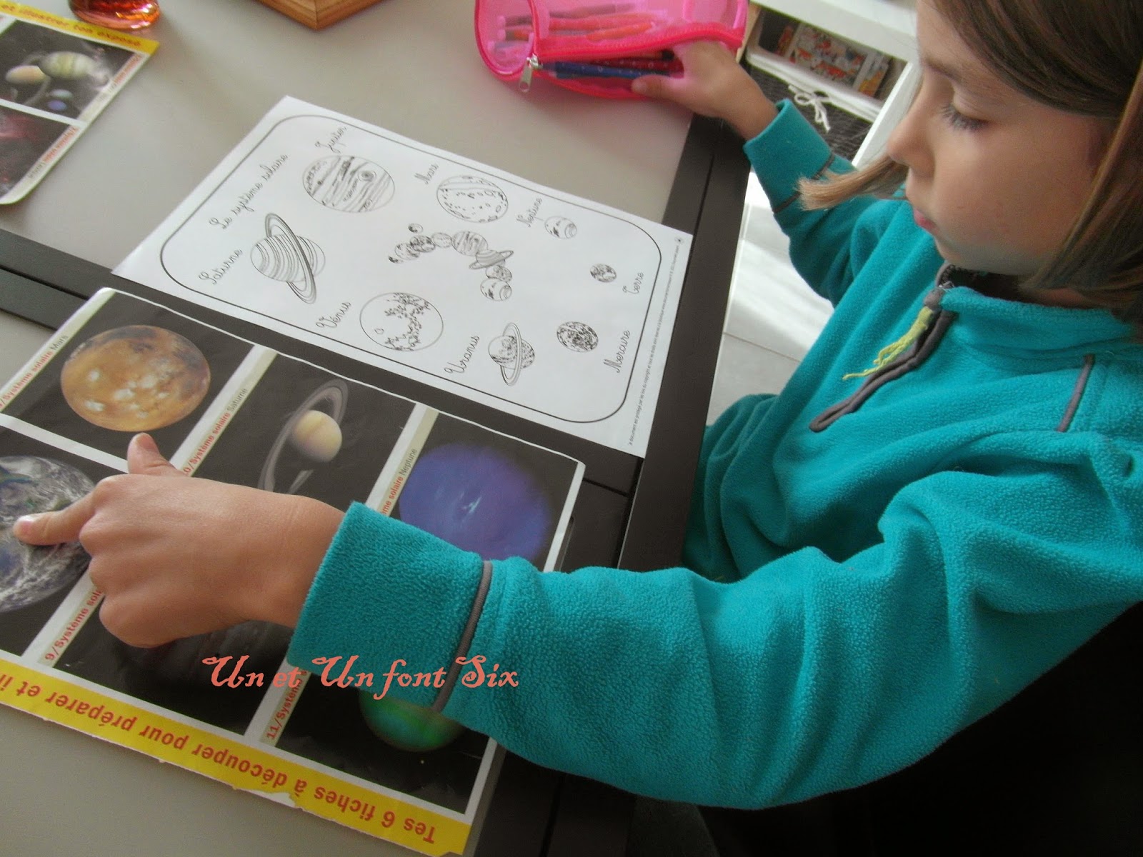 Nous avons débuté par un coloriage du système solaire pour chacun, il vient de chez Documents Montessori .