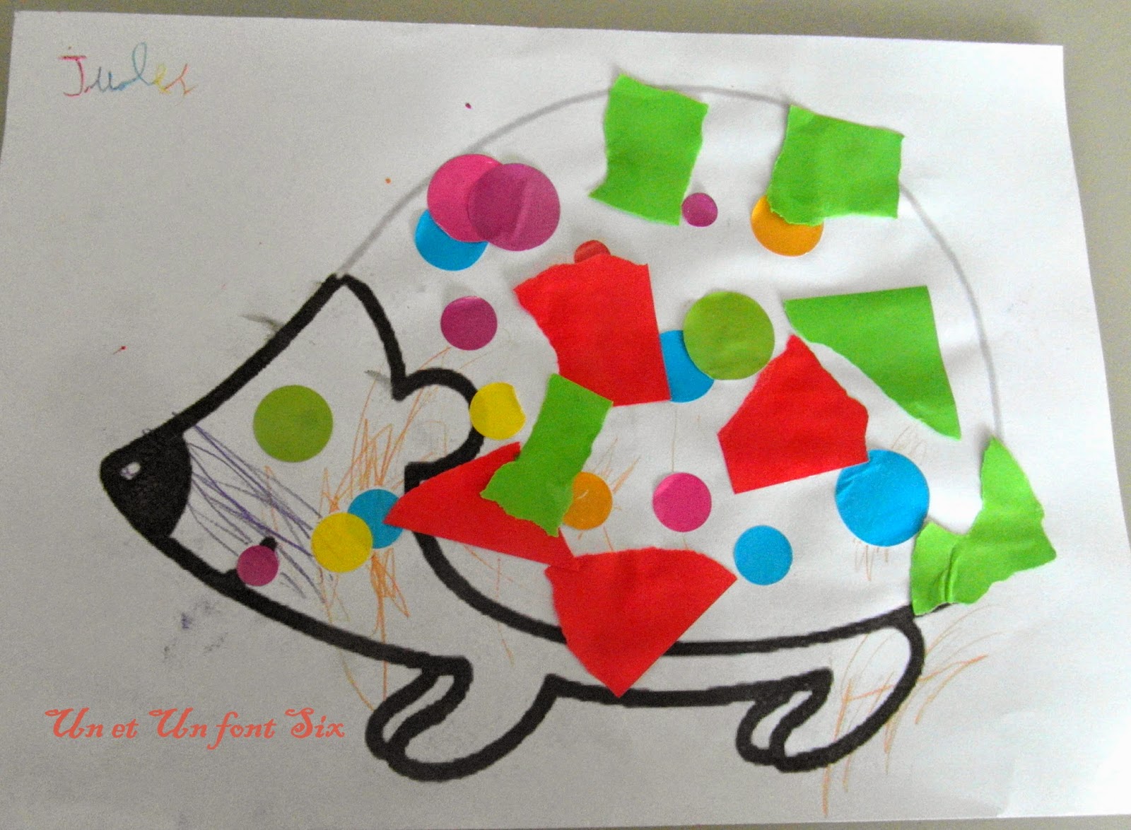 J'avais fait un grand rond et il devait coller les gommettes à l'interieur du rond.