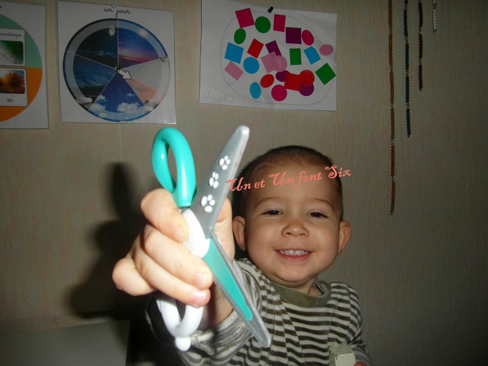 J'avais fait un grand rond et il devait coller les gommettes à l'interieur du rond.