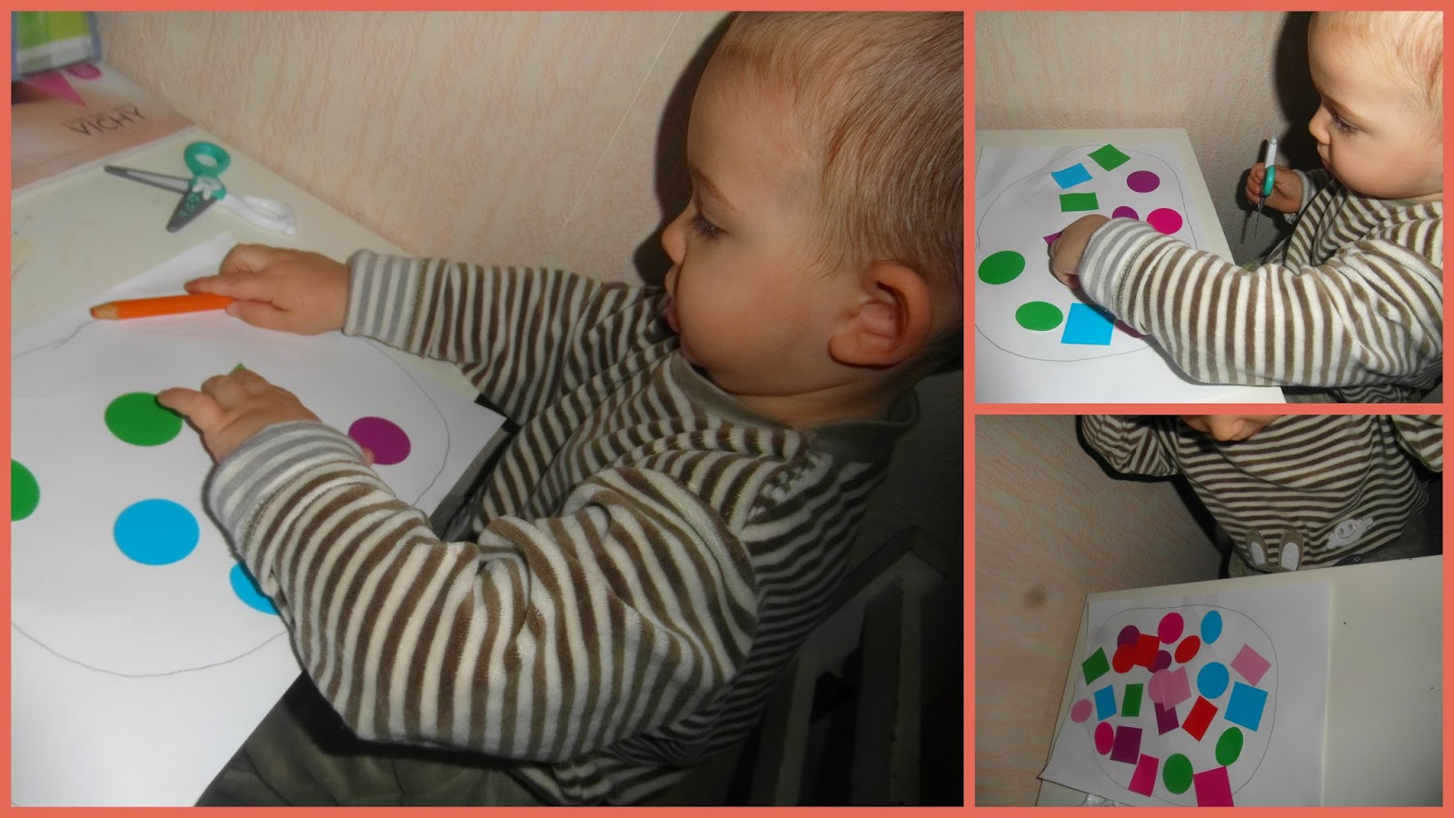 J'avais fait un grand rond et il devait coller les gommettes à l'interieur du rond.