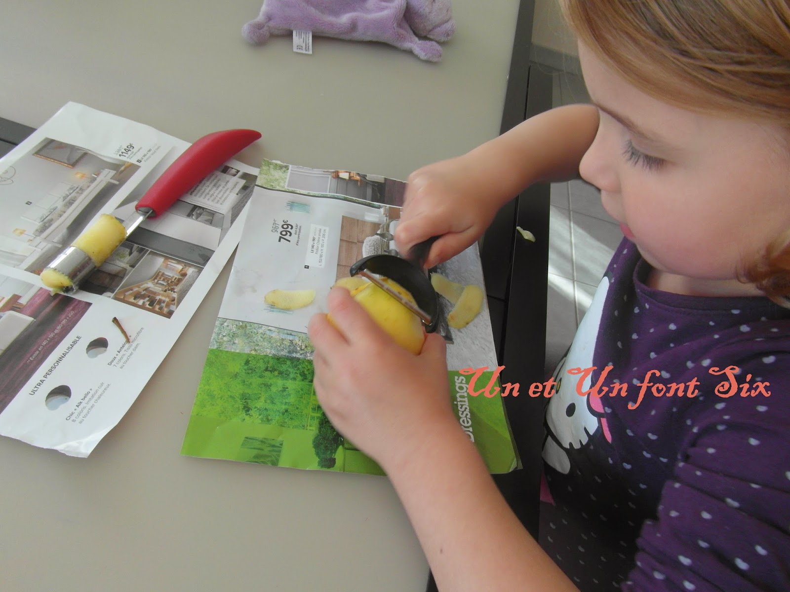 | Elle devient très douée , elle a épluché toutes les pommes seule et assez rapidement |