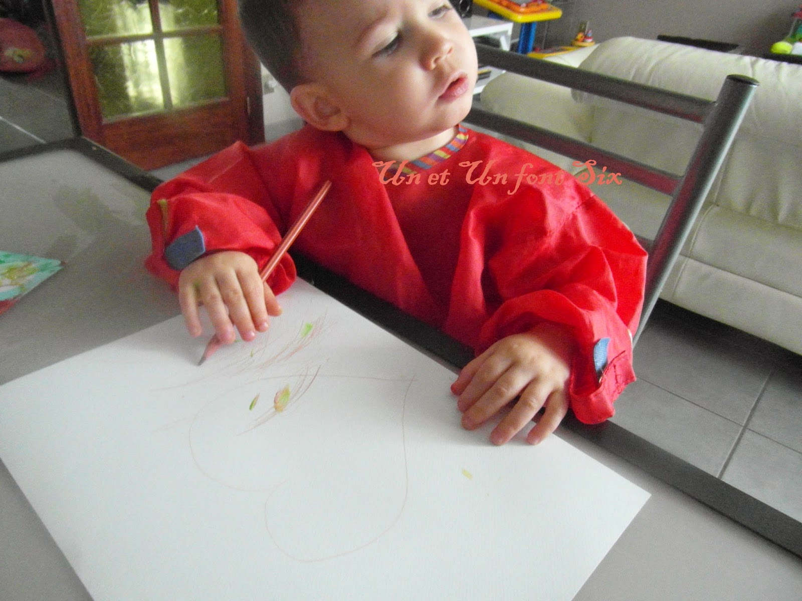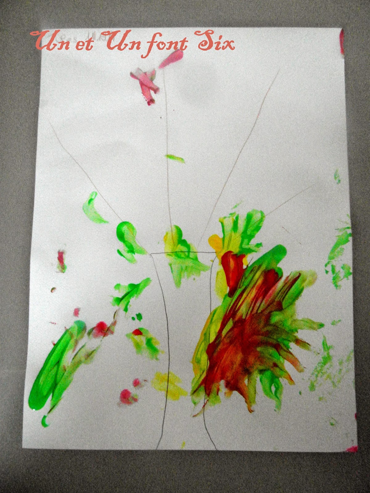 J'aurai aimé qu'il fasse des marques de doigts pour représenter les feuilles de l'arbre qui vont tomber mais je lui ai laissé quartier libre !