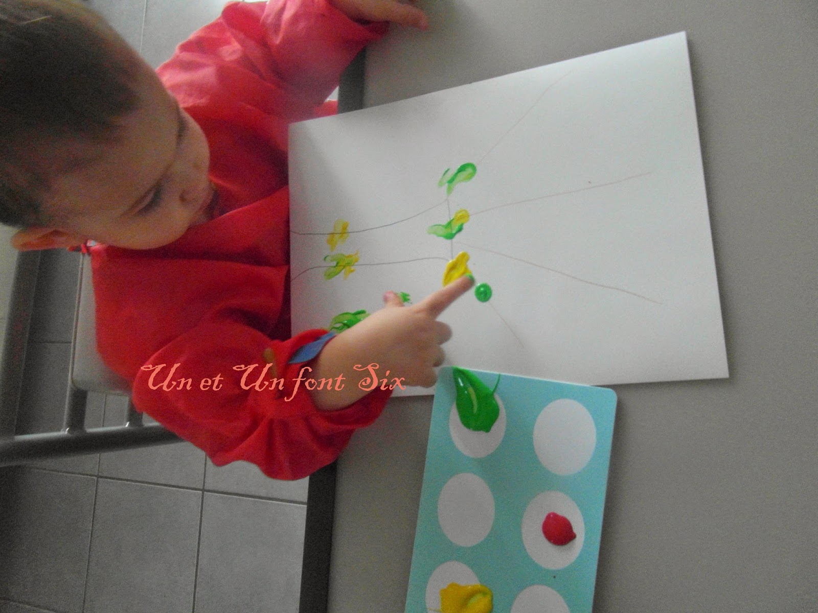 2. Rigolo j'ai fais aussi l'activité de l'arbre avec la peinture aux doigts et cotons tiges aux enfants que je garde aujourd'hui même !
