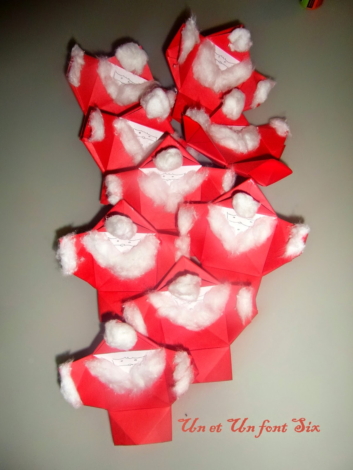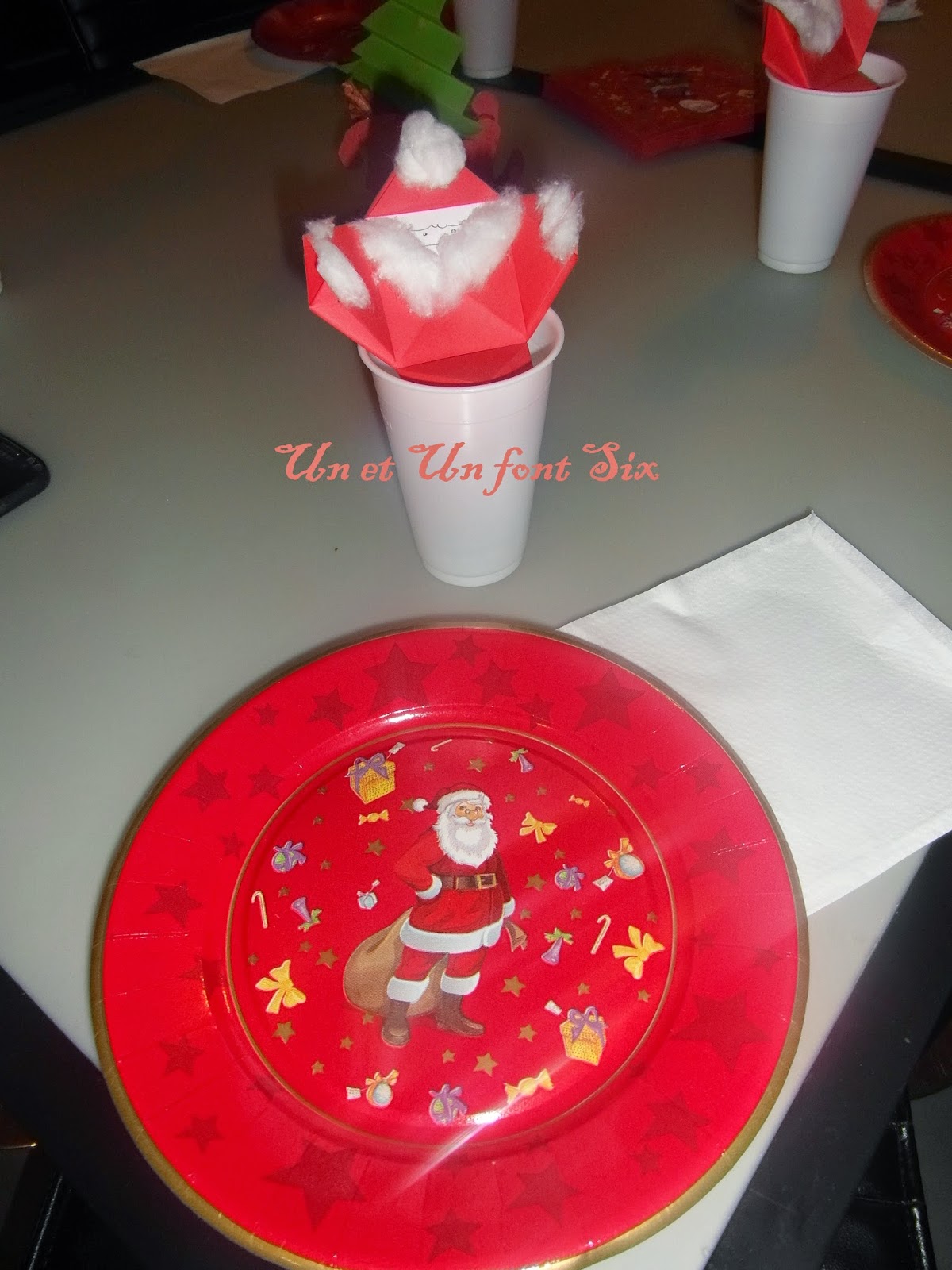 La semaine avant les vacances scolaires, j'avais été dans la classe de mon deuz pour effectuer des décorations de Noël . J'ai donc trouvé le pliage de père noël plutôt sympa . ( réalisable avec des serviettes mais j'ai pris du papier ici).