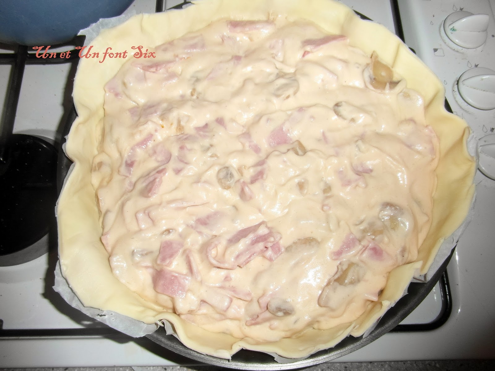 Ajouter le gruyère , champignons , lamelles de jambon et fouetter.