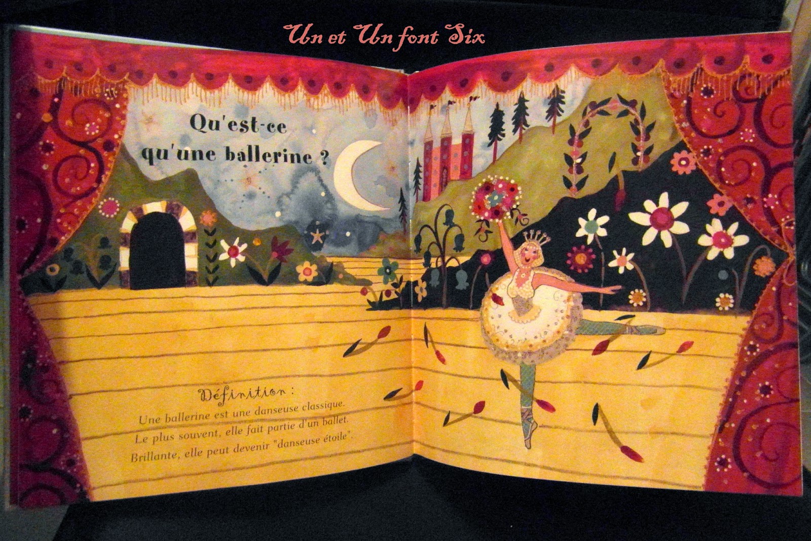 Dans ce joli livre, on y retrouve des explications simples sur les ballerines comme qu'est ce qu'une ballerine? L'histoire du ballet, Comment devenir Ballerine? ............. Notre 5 ans a été ravie de découvrir tout celà avec de jolies illustrations colorées , girly à souhait !