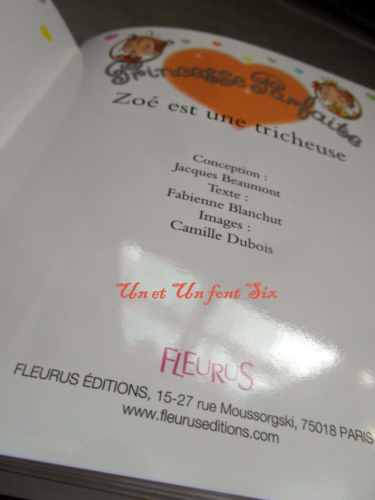 Le livre est intitulé "Zoé est une tricheuse" de la collection Princesse Parfaite . Il vient tout juste de paraître février 2015 au édition Fleurus.