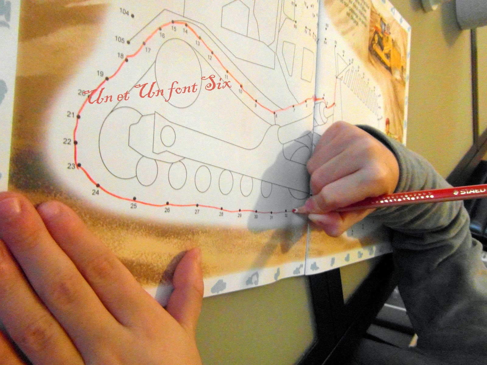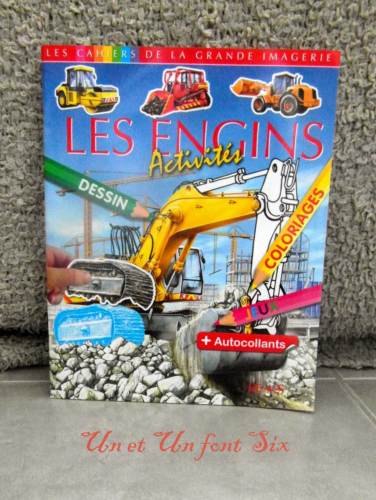 Pour les occuper cette semaine , nous avions prévu des activités en tout genre sans compter les microbes qui se sont invités!! Donc hop , nous voilà entrain de tester le tout nouveau livre d'activités sur les engins de chantier de chez FLEURUS paru le 13 février 2015.