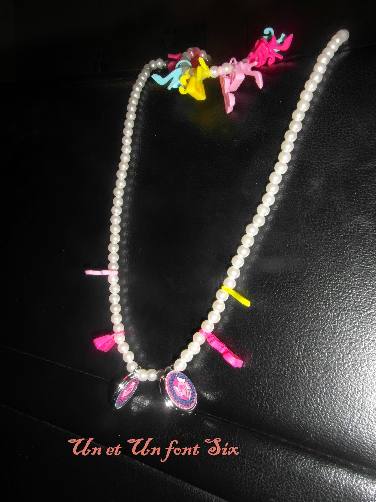 Et Savannah a fait des petites perles de la gamme Barbie qu'elle a eu à son anniversaire par une copine. Je les trouvais très habile et logique. Elle a tout fait seule sauf les nœuds . Elle a compté les couleurs perles... Elle a été concentré un moment.