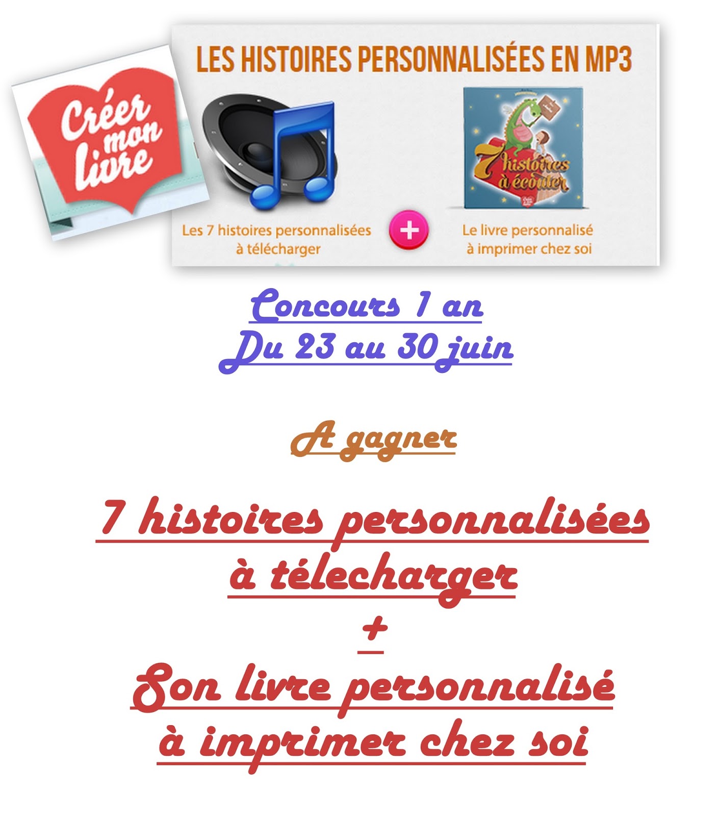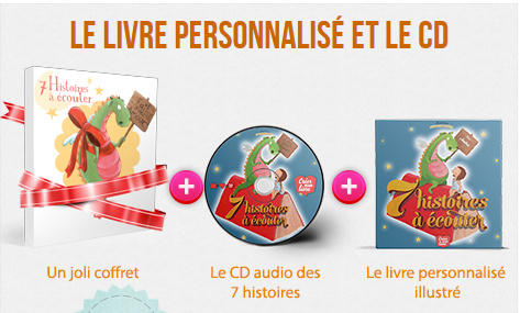Sur Créer mon livre vous pouvez découvrir des coffrets de livres audio enfants ( coffret, cd et livre) ou tout recevoir en format mp3 ! ( J'aime beaucoup ce format comme ici nous écoutons beaucoup de chants sur ordinateur) ! Mais il y a aussi des livres de lecture personnalisées pour adultes, ados et enfants , ça peut être un cadeau très original surtout pour des premiers lecteurs.