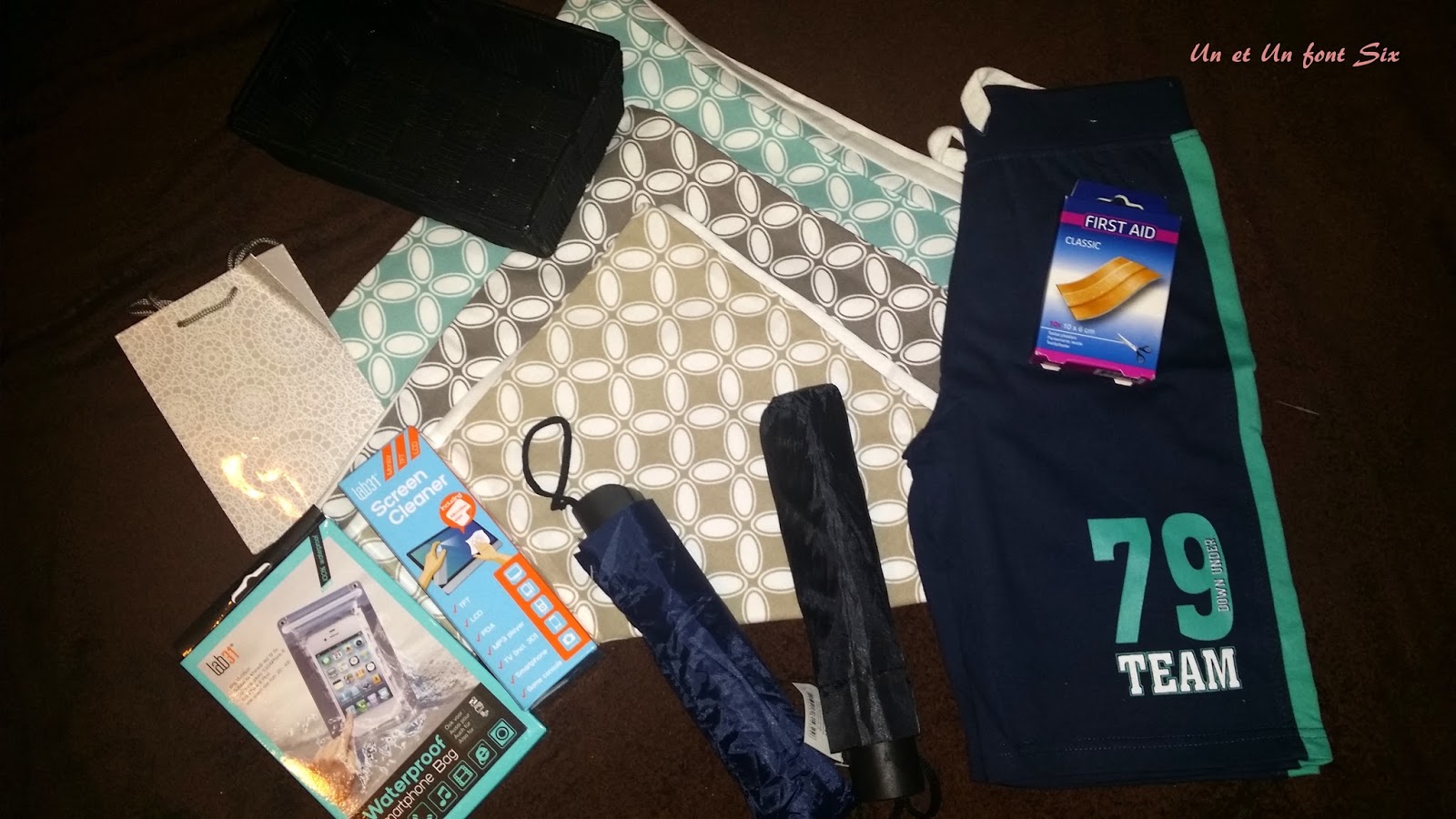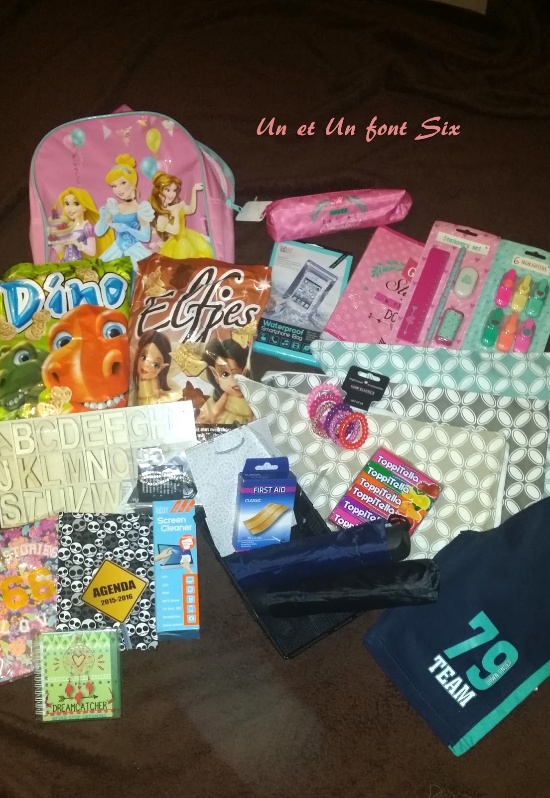 un petit sac cadeau, 2 parapluies pour les grands l'année pro, des pansements,