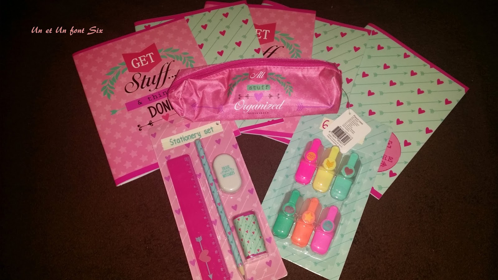 Un set de cahier et trousse trop cute pour Savannah , les surligneurs c'est