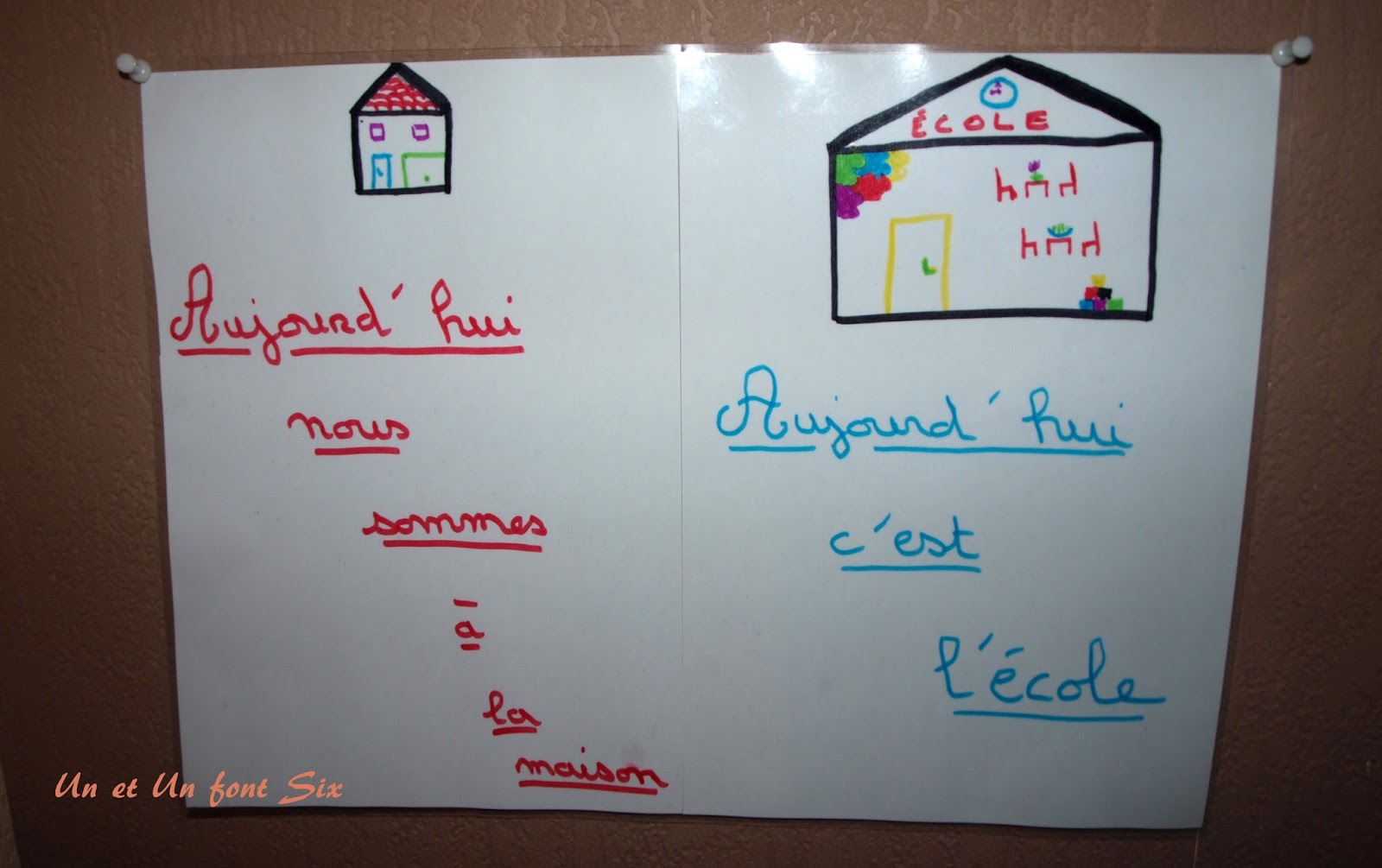 Un petit montage avec aujourd'hui je suis à la maison, aujourd'hui c'est l’école