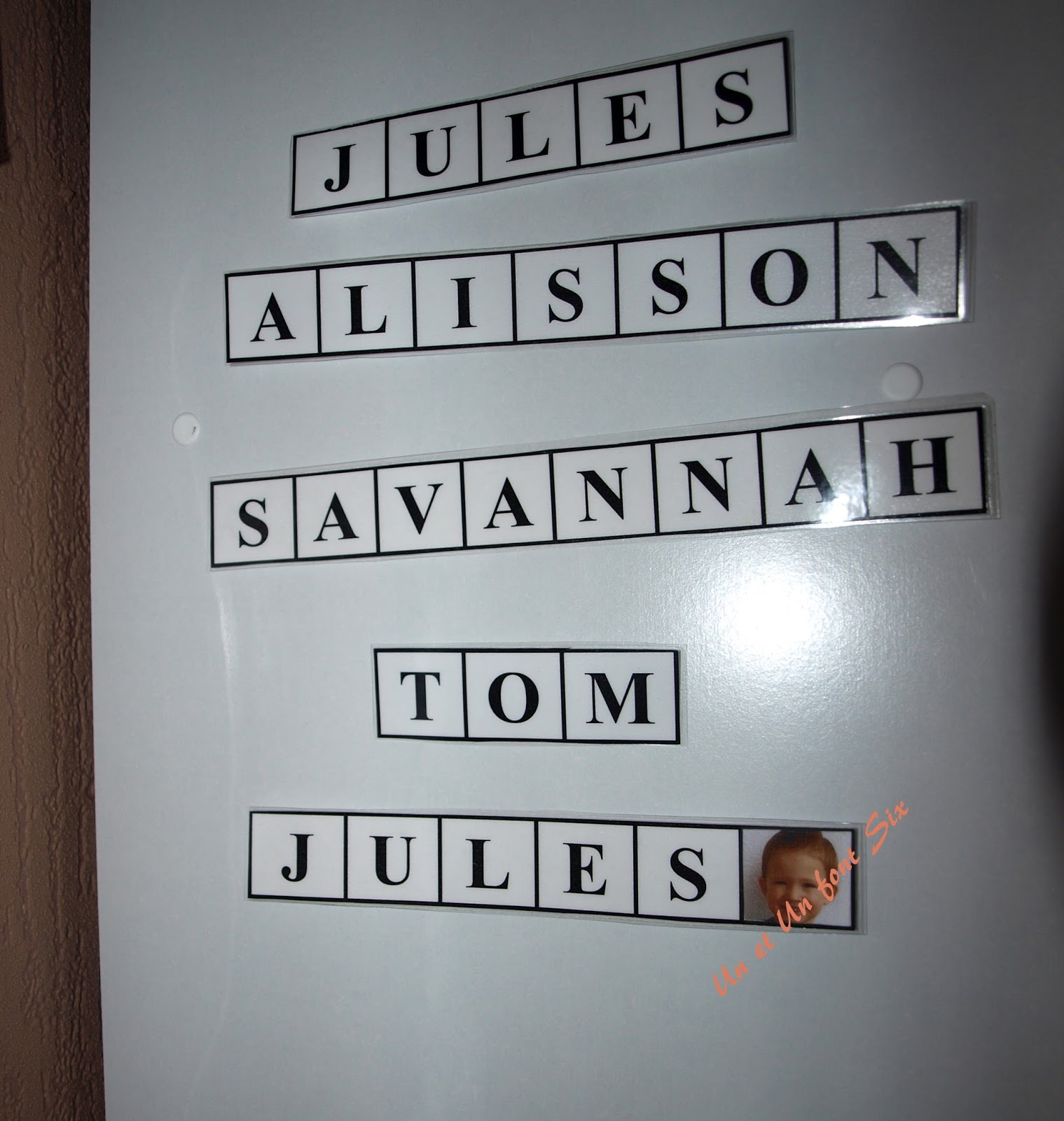 Des petites étiquettes prénoms en lettres majuscules avec photo pour Juju qui ne sait pas encore reconnaître son prénom et une sans pour plu tard.