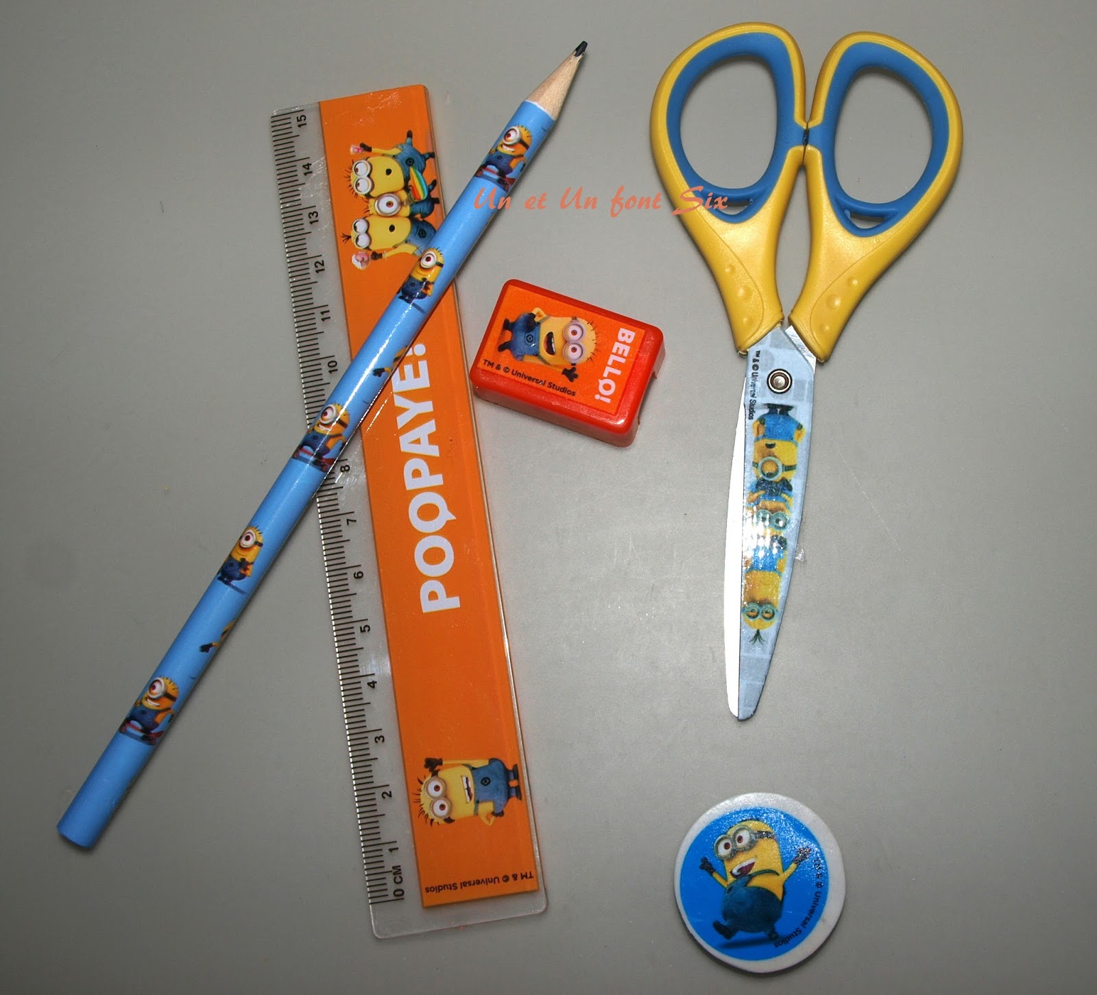 Le kit ouvert + la paire de ciseaux Maped que je lui ai pris la semaine dernière! On commence à être équipé en minions en plus des colles UHU Minions .