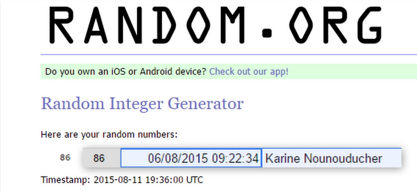 Tirage par Random.org le12/08