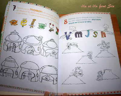 Au fil des pages du cahier l'enfant évolue , sur les premiers pages des deviennettes sur les lettres avec leur signification. Puis au fur et à mesure des jeux de lettres, de graphismes, de reproduction avec de super gommettes bien rangé au fond du cahier pour réaliser les épreuves .