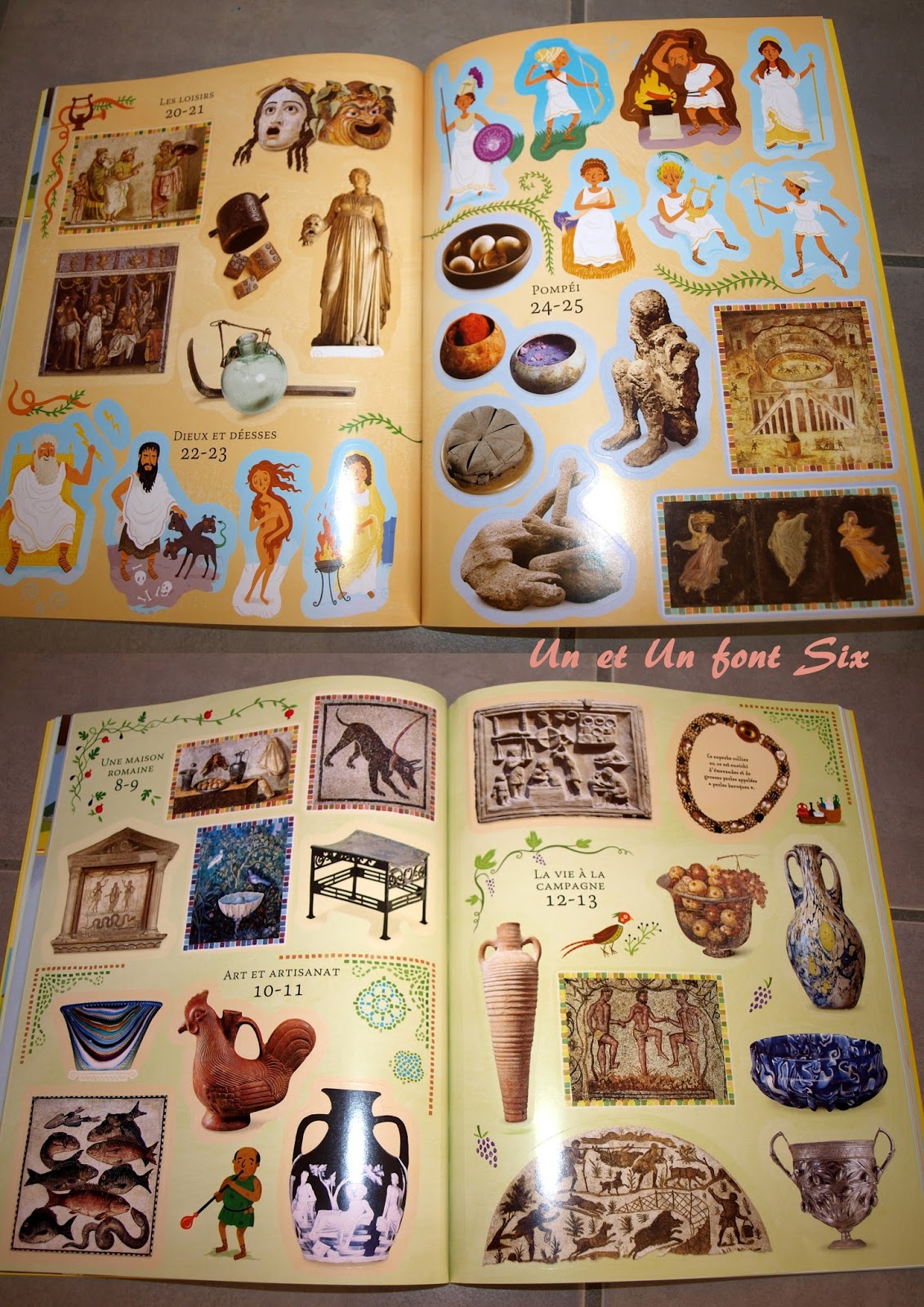 Celui ci est différent des 2 autres selon un court texte il faut reproduire les scènes des Grecs anciens en collant les autocollants. La troiz a préféré celui ci car pas trop de texte plus de collage.