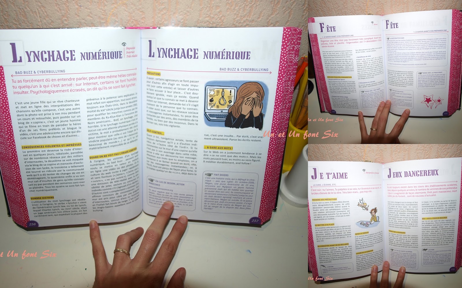 A la fin, du livres se trouve quelques pages utiles comme les premiers pas en gym, comment coudre un bouton, et des schémas des parties intimes féminins et masculins ainsi que comment mettre un préservatif ...