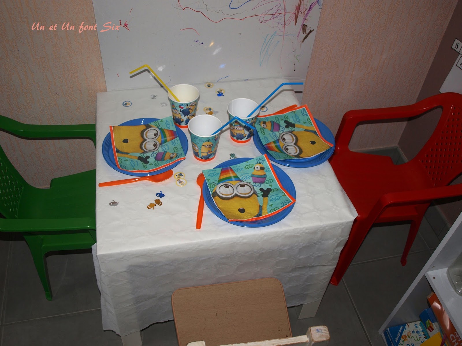Le thème des Minions s'associait à mon goût à la couleur jaune ainsi qu'au bleu qui a été le point de départ de ma décoration! J'avais commencé les achats en juillet pour les verres , serviettes .......