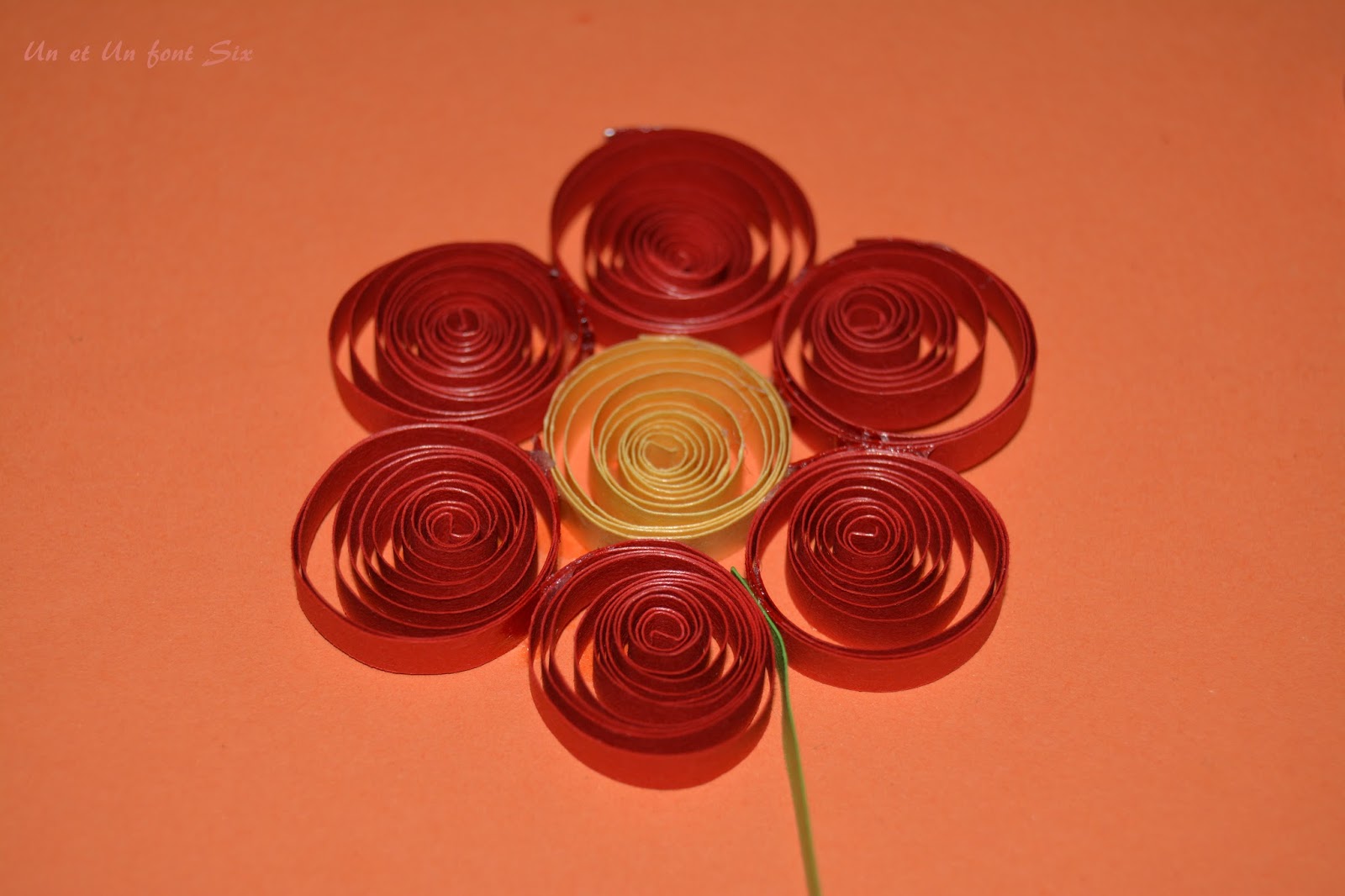 Le choix des couleurs est fait , nous pouvons enrouler avec l'outil enrouleur et mettre à bonne dimension le rond à l'aide de la réglette. Une pointe de colle au cure dent ou pinceau et c'est fini! Vous pouvez aussi donner un coup de colle au pinceau par dessus pour être sur que ça soit plus solide.