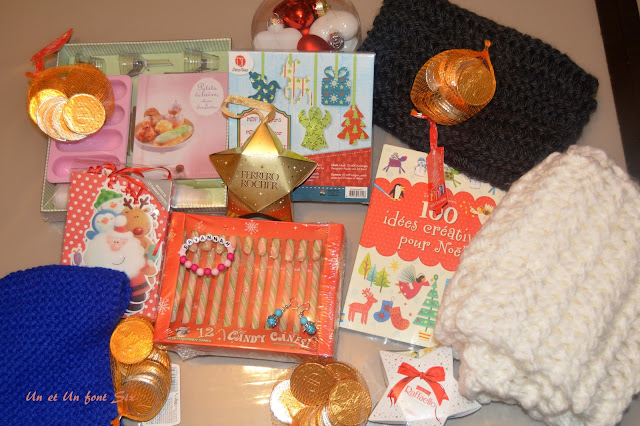 Des snoods pour les garçons et moi , des bijoux pour les filles , des décorations, des activités , des éclairs :) , des gourmandises...... Sa carte va arrivé elle sera en édit.