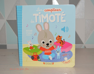Un petit dernier des éditions Gründ , son premier livre de comptines que Petit Pois découvrira grâce à Timoté. J'aime beaucoup ces petits livres qui ont sur chaque page une petite puce sonore qui sortira un doux son , sous l'appuie du doigt de bébé . En grandissant, il pourra associer les tendres illustrations aux comptines. Dans celui ci, il découvrira Jean Petit qui danse, Dans la fôret lointaine, la Barbichette...........