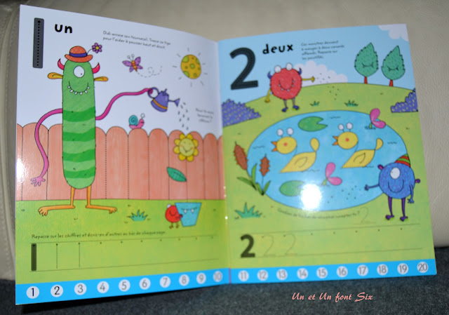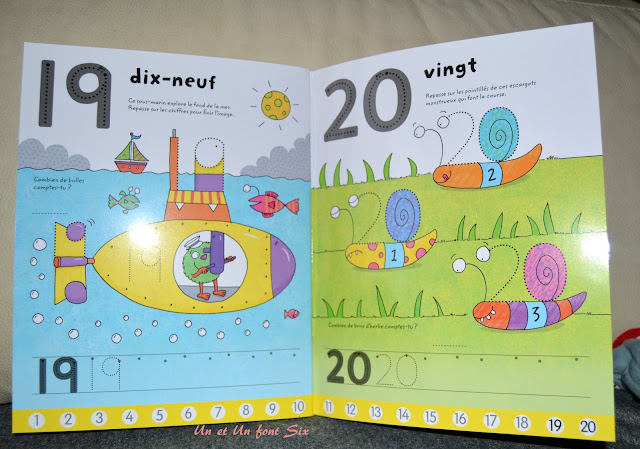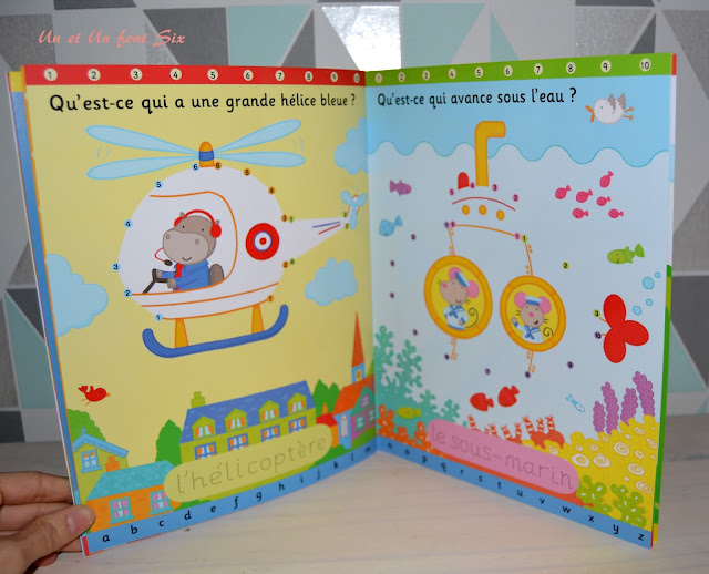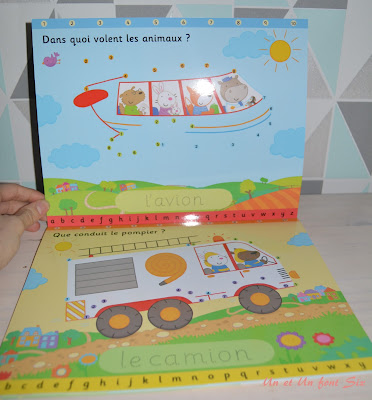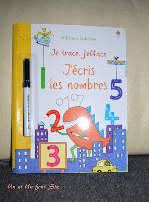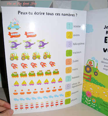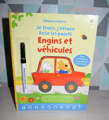 Des petits livres qu'on peut emmener partout , car un feutre "veleda" et un chiffon suffisent. Je les aime beaucoup car ils apprennent aux enfants tout en s'amusant . L'enfant doit retracer les chiffres qui sont reproduits par des petits points , ou retracer des véhicules en suivant les chiffres et un ordre couleur.