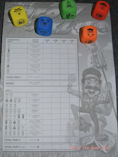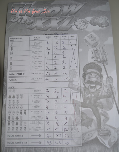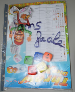 Ce petit jeu est un Yams facile mais revisité avec des animaux (poule, chèvre, mouton, vache, cheval et cochon) et des dés de couleurs. ( jaune, orange, rouge, bleu et vert).