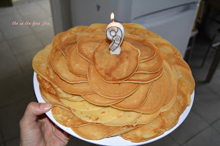 Il y a eu de la déco pour faire plaisir mais aussi des gâteaux , pareil des choses rapides qu'il aime nous avons fait un gâteau de crêpes que mamie avait cuit pendant que je m'occupais de la table , des panacotta au nutella que j'avais préparer la veille pour qu'elles aient bien pris!