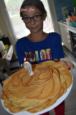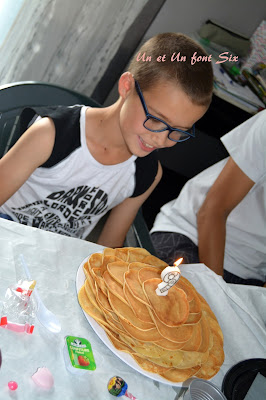 Il y a eu de la déco pour faire plaisir mais aussi des gâteaux , pareil des choses rapides qu'il aime nous avons fait un gâteau de crêpes que mamie avait cuit pendant que je m'occupais de la table , des panacotta au nutella que j'avais préparer la veille pour qu'elles aient bien pris!