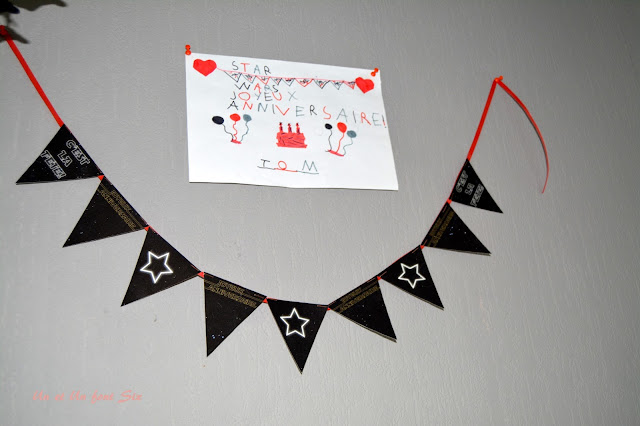 Comme le temps m’était compté entre mon accouchement, les enfants et petit pois à l’hôpital, je n'ai pas eu le temps d'organiser exactement ce que je voulais mais Fêtes et Malices est venu à ma rescousse en me m'offrant un kit de déco!