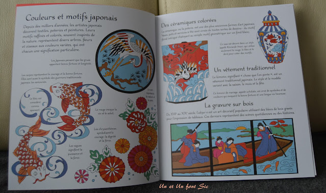 Et pour la grande qui elle reste plus souvent au calme à la maison, un peu de détente avec ces jolis coloriages intitulés " Motifs traditionnels du monde entier" et "Motifs japonais" aux éditions Usborne.
