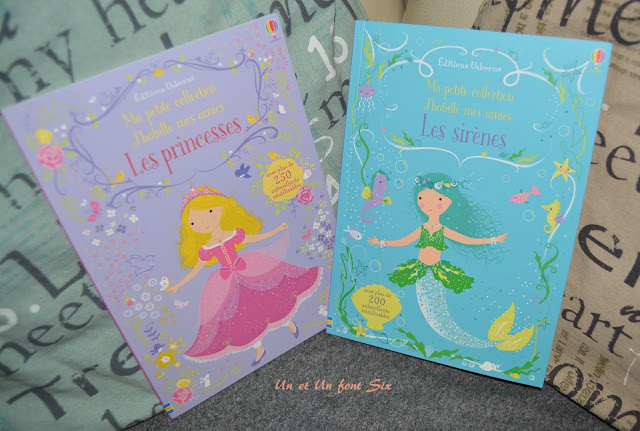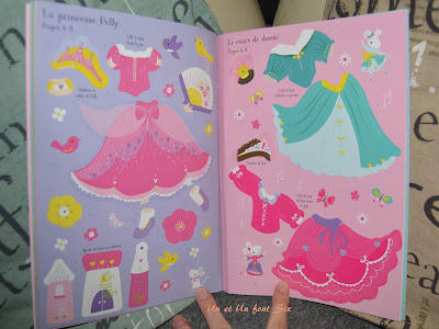 La troiz , elle préfère les livres à stickers de princesses!! Elle a porté son dévolu sur ceux de la petite collection "J'habille mes amies" des éditions Usborne, je vous en ai déjà parlé mais ceux ci font partis des nouveaux modèles. Le livre est plus petit qu'avant donc facilement transportable , les autocollants sont repositionnables ! Les couleurs pastels de ces 2 livres font révés.