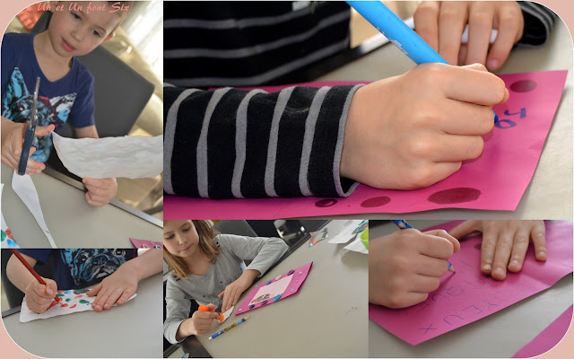 Découper, Coller, Ecrire un petit mot ( avec l'aide de son frère pour Jules)