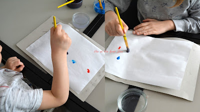 Comme l'année dernière , pour l'arriver du printemps, nous avons commencé les activités de Pâques . Voici la première réalisée par les petits ( 7 et 4 ans)