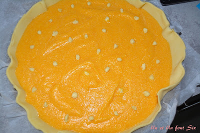 La préparation est prête , déposez la sur la pâte et y ajouter des petites boules de pâte sur le dessus pour ne pas trop qu'elle gonfle
