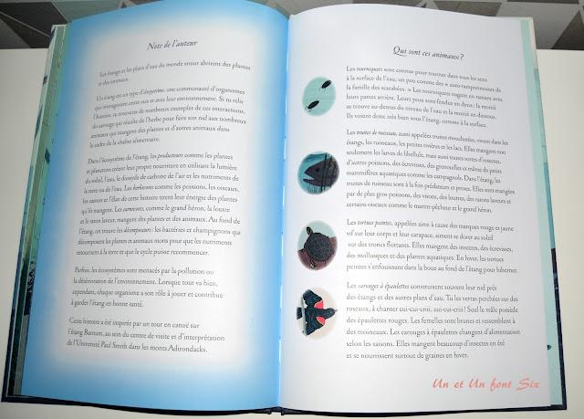 A la fin du livre, on peut découvrir la note de l'auteur qui nous explique les particularités d'un étang mais aussi un descriptif de chaque animaux qu'on a pu découvrir tout au long de l'histoire .