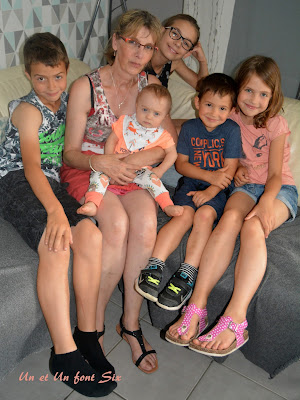 Mamie ( ma maman) et 5 de ses petits enfants , il manquait Pol qui dormait