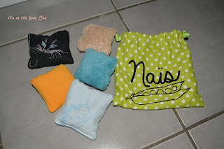 Leurs coussins sensorielles reçus lors de la naissance de Naïs crée par ma copine Anne Sophie